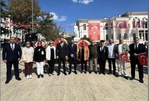 Vali Recep Soytürk, Tekirdağ Büyükşehir Belediye Başkanı Candan Yüceer, il protokolü ve siyasi parti temsilcilerinin katılımıyla gerçekleşen törende, Atatürk Anıtı’na çelenkler sunuldu.