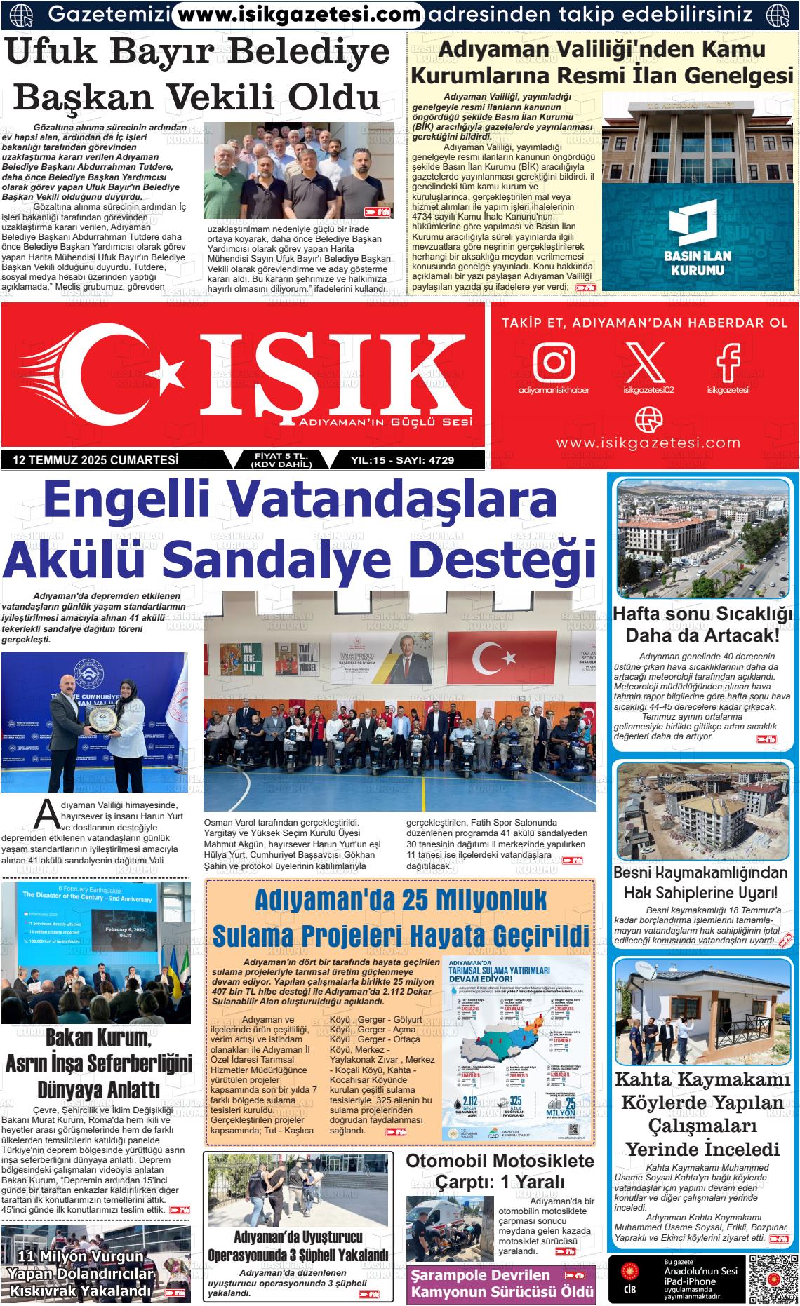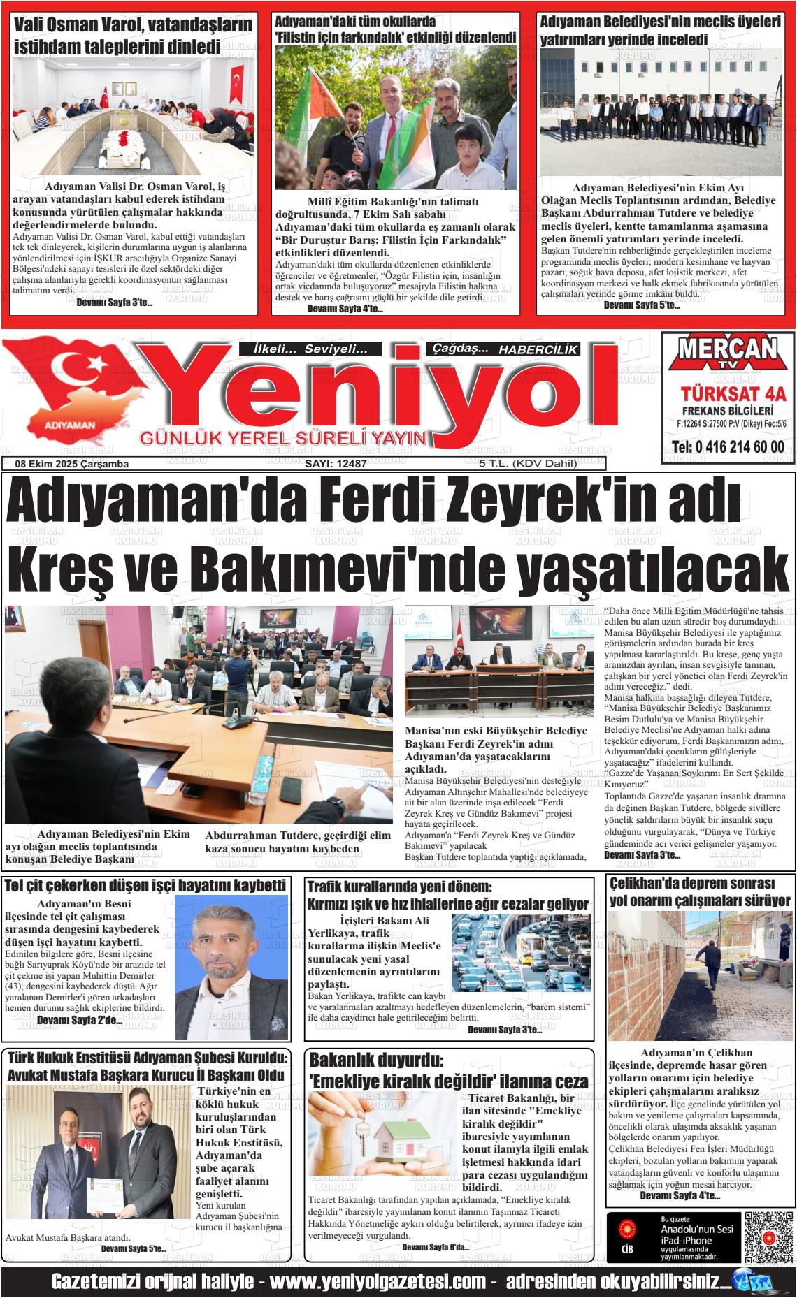 Adıyaman Yerel Gazeteleri 29 Ocak 2026, Perşembe Günü Manşeti
