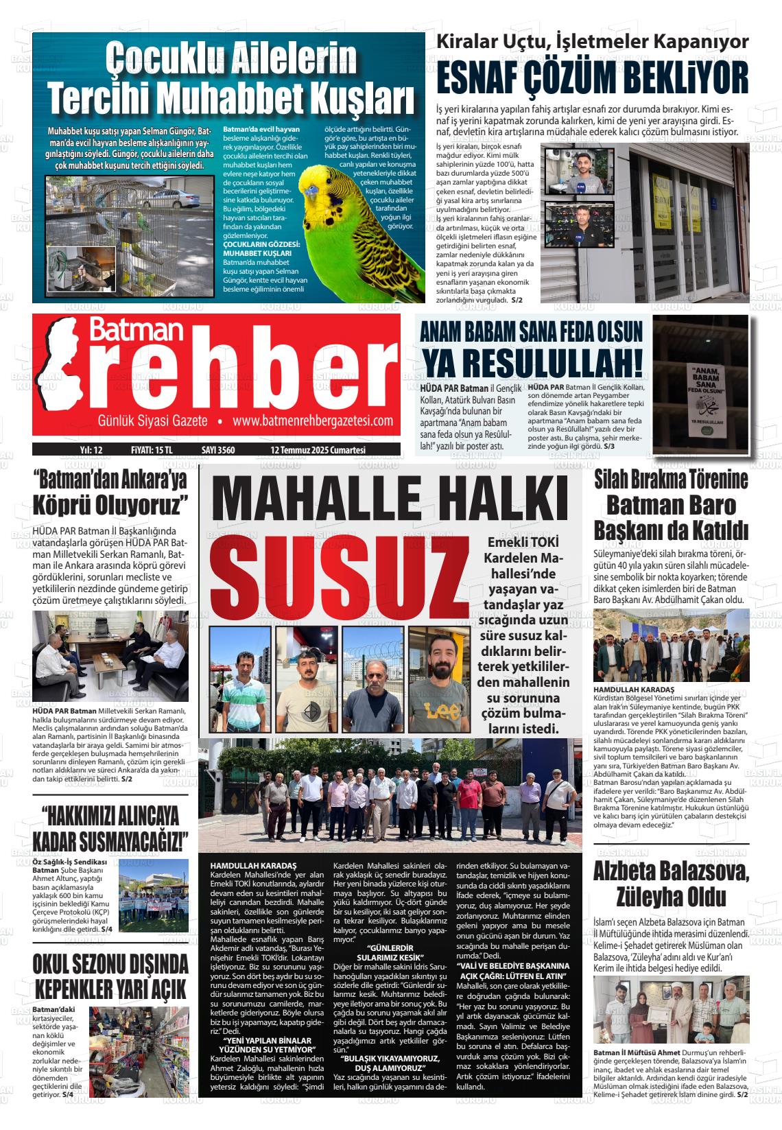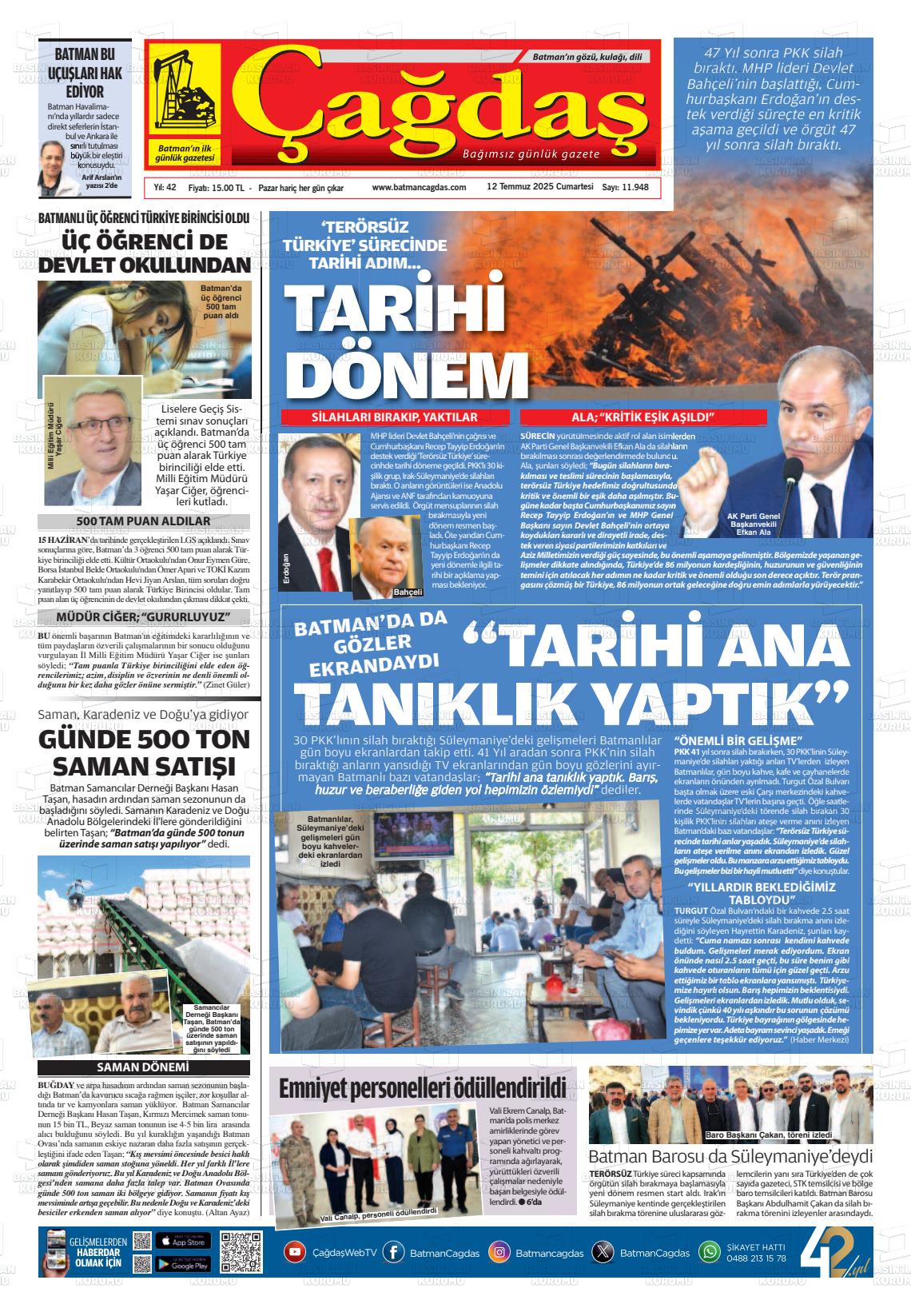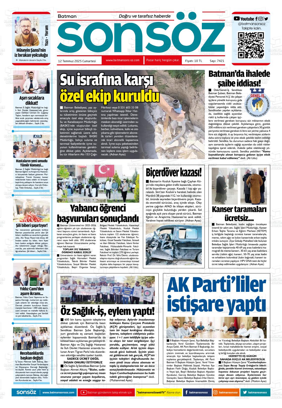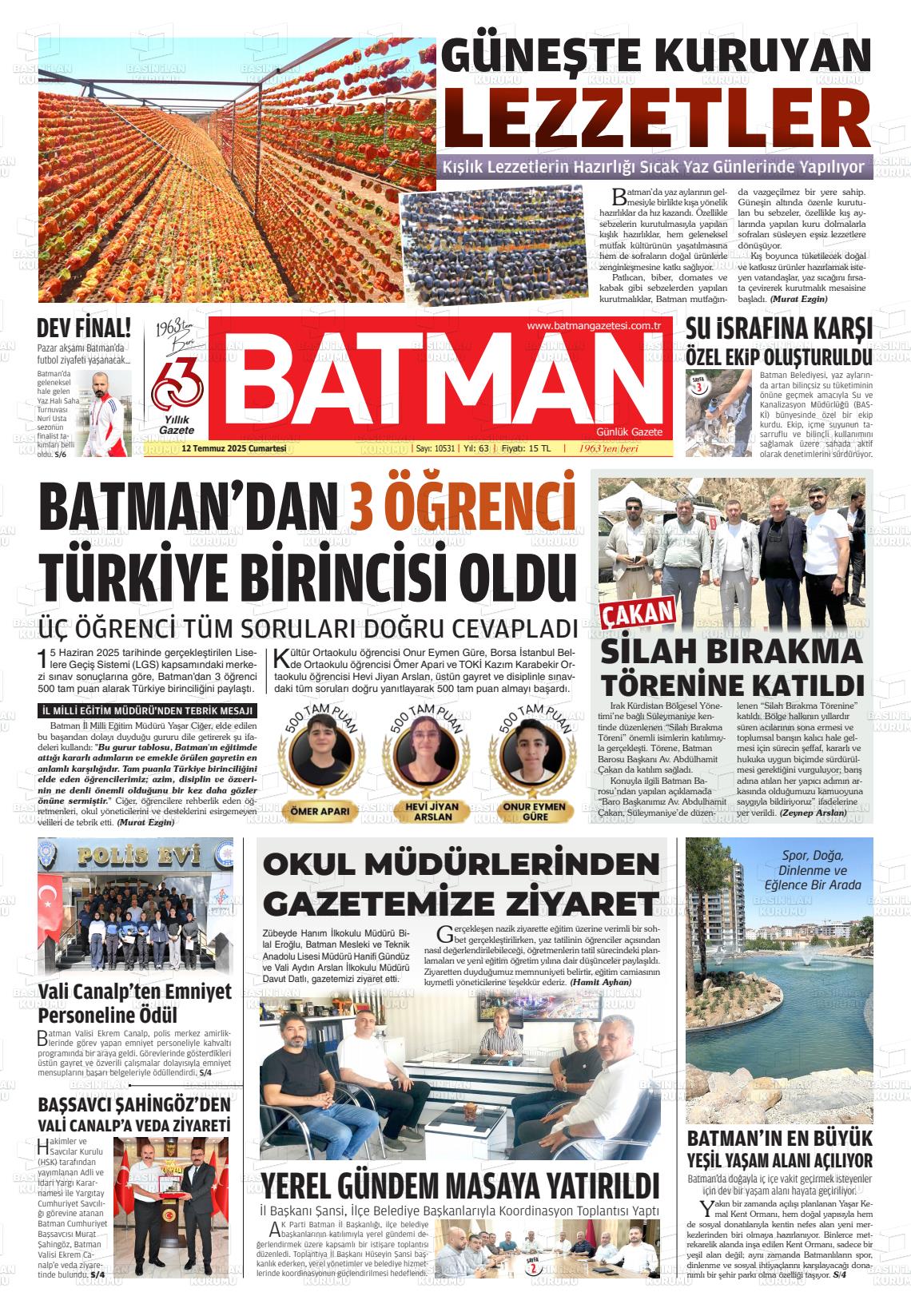 Batman Yerel Gazeteleri 29 Ocak 2026, Perşembe Günü Manşeti