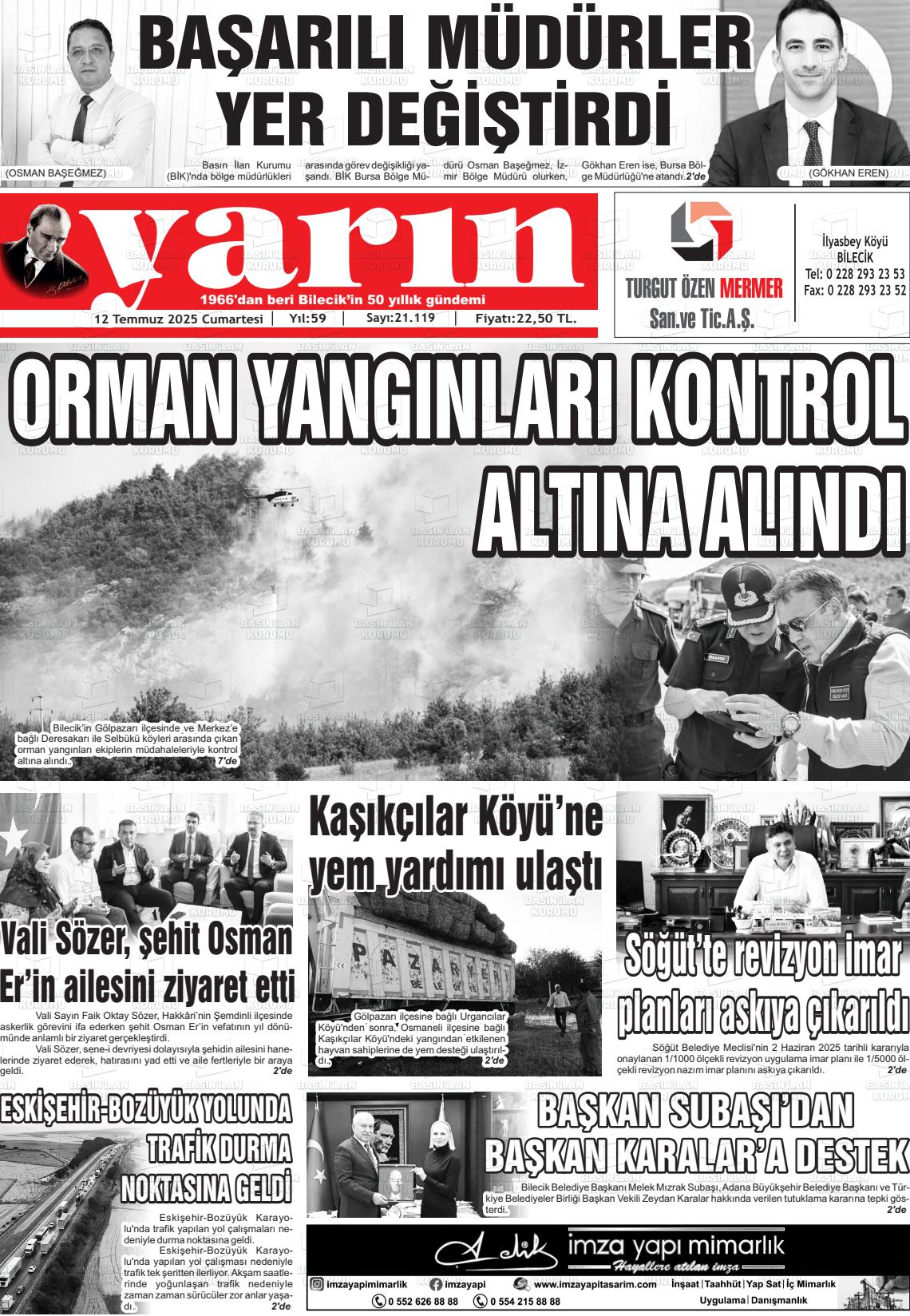 Bİlecİk Yerel Gazeteleri 23 Kasım 2025, Pazar Günü Manşeti