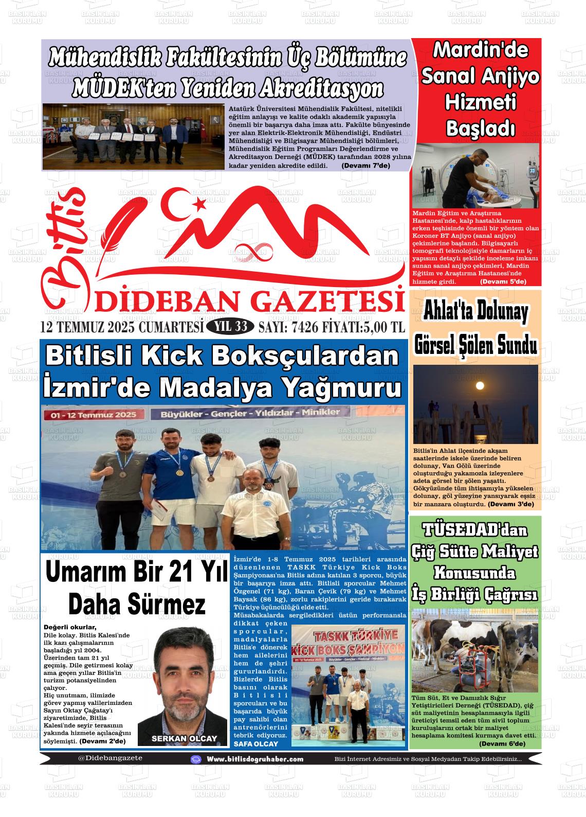 Bİtlİs Yerel Gazeteleri 29 Ocak 2026, Perşembe Günü Manşeti