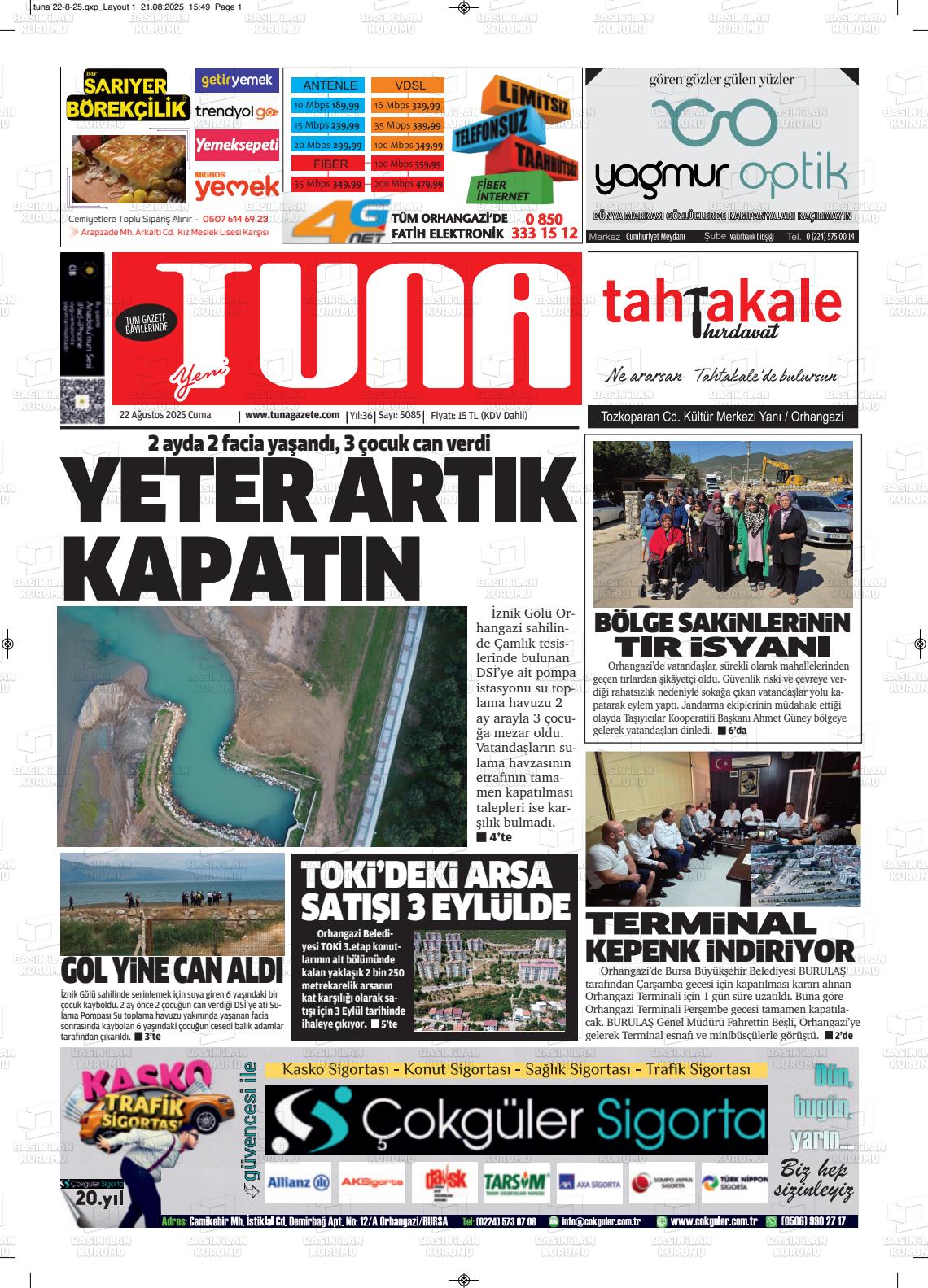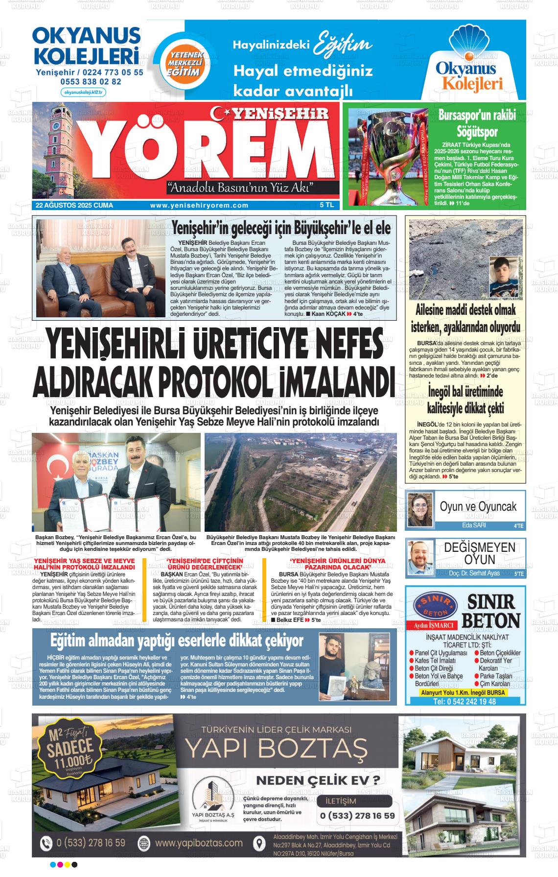 Bursa Yerel Gazeteleri 29 Ocak 2026, Perşembe Günü Manşeti
