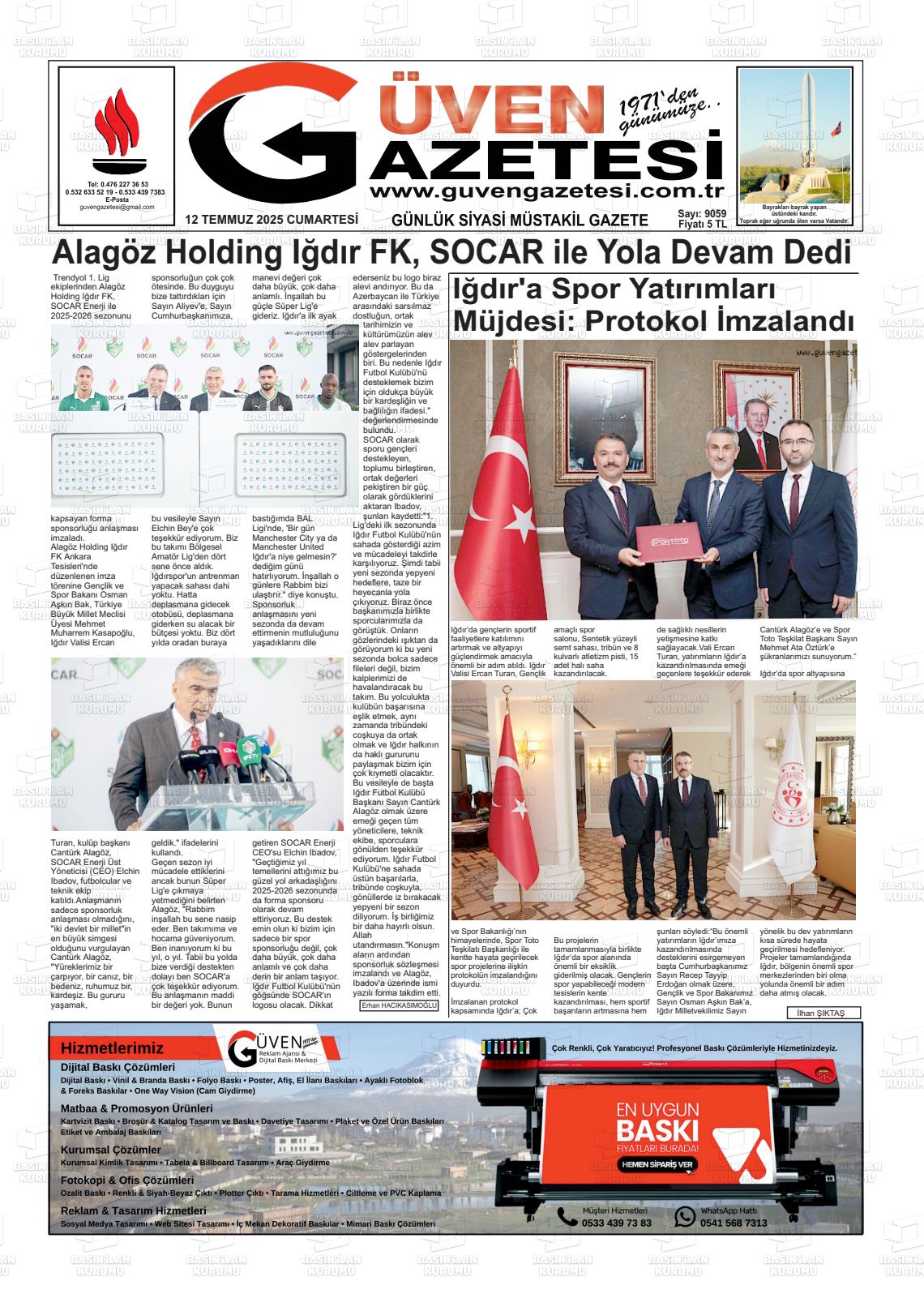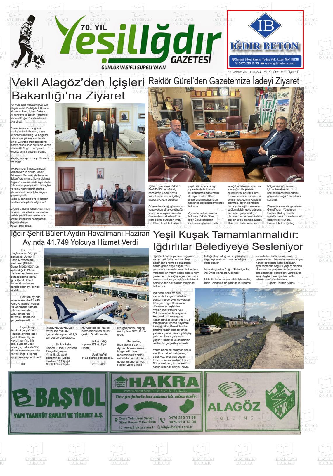 Iğdır Yerel Gazeteleri 29 Ocak 2026, Perşembe Günü Manşeti