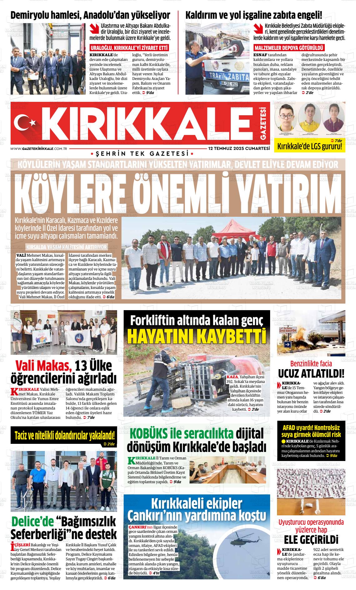 Kırıkkale Yerel Gazeteleri 29 Ocak 2026, Perşembe Günü Manşeti