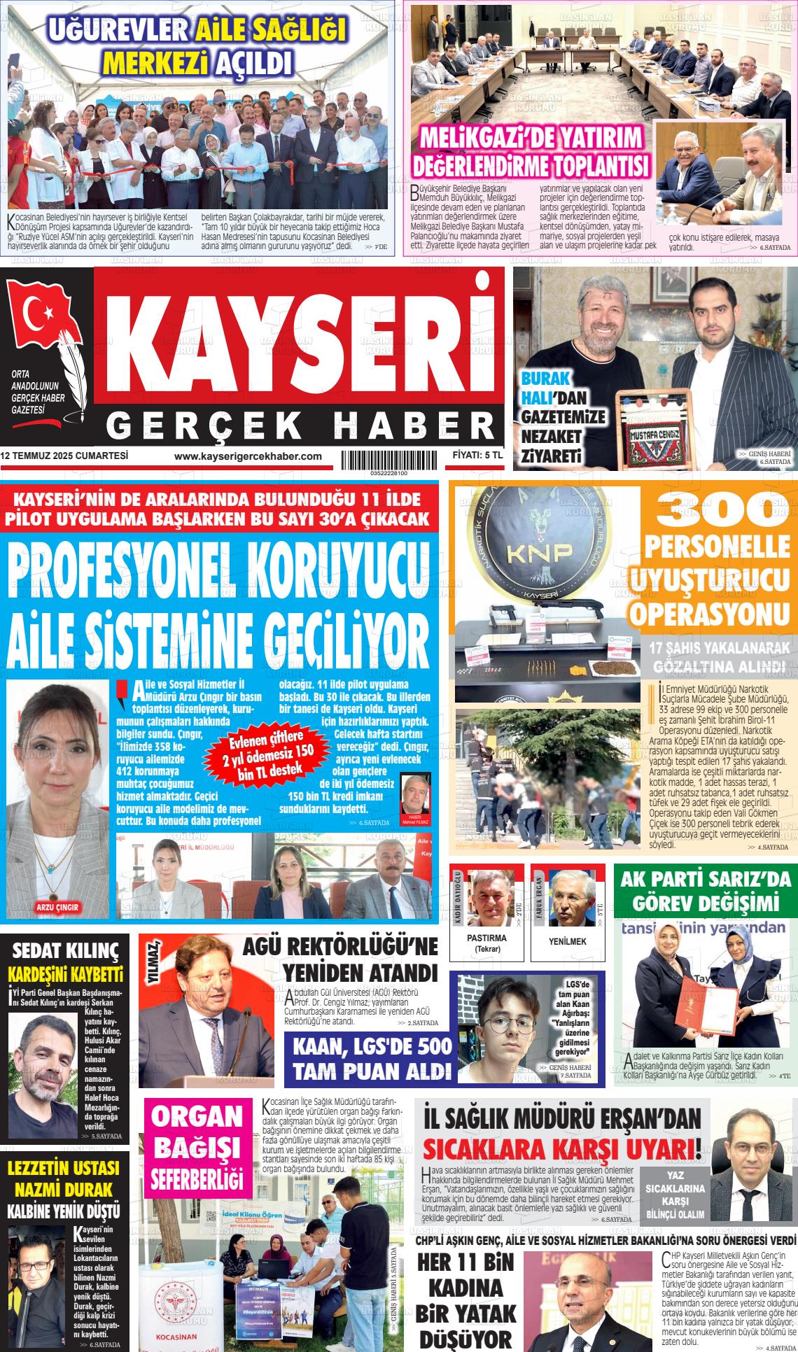 Kayserİ Yerel Gazeteleri 29 Ocak 2026, Perşembe Günü Manşeti