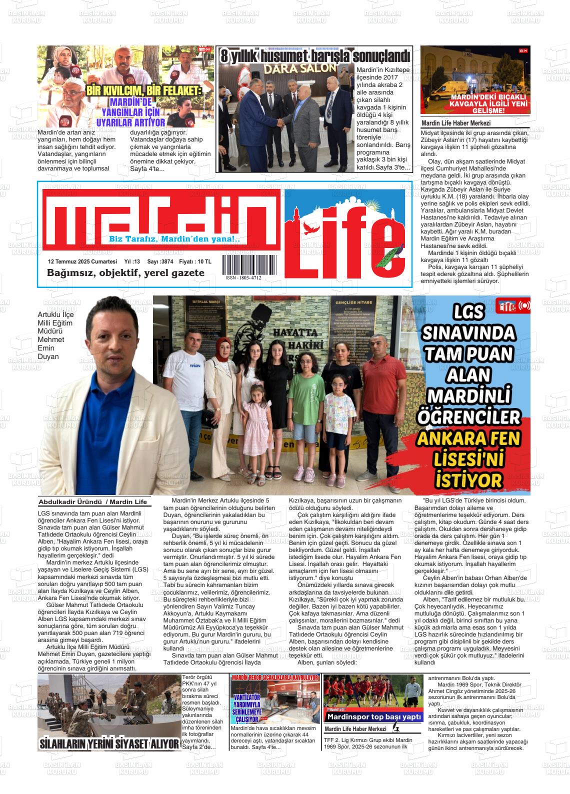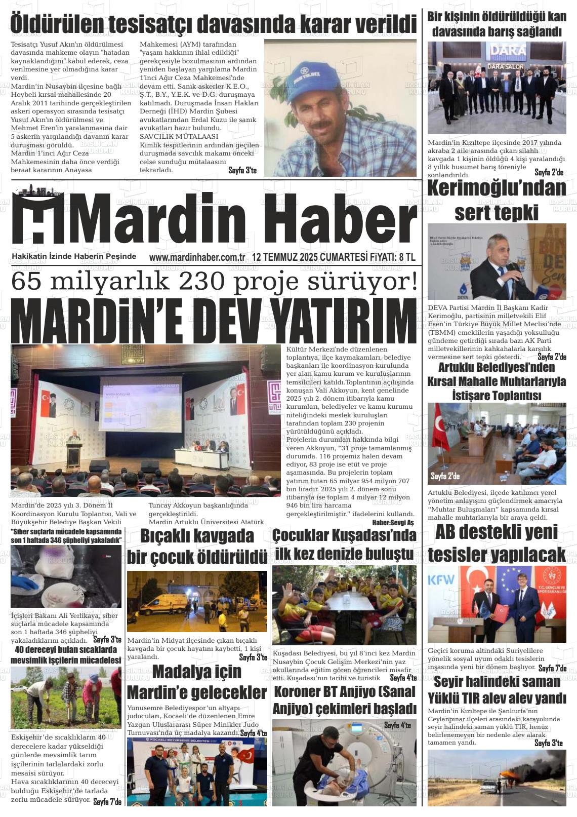 Mardİn Yerel Gazeteleri 29 Ocak 2026, Perşembe Günü Manşeti