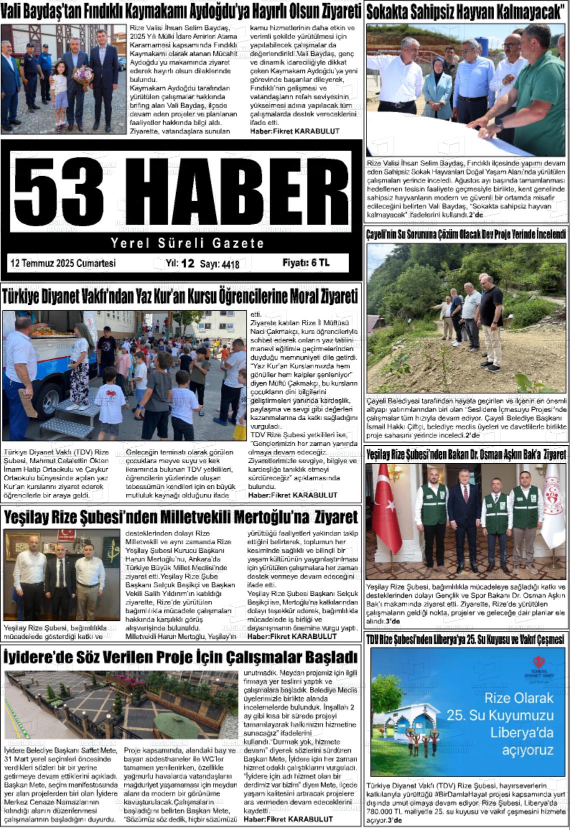 Rİze Yerel Gazeteleri 29 Ocak 2026, Perşembe Günü Manşeti