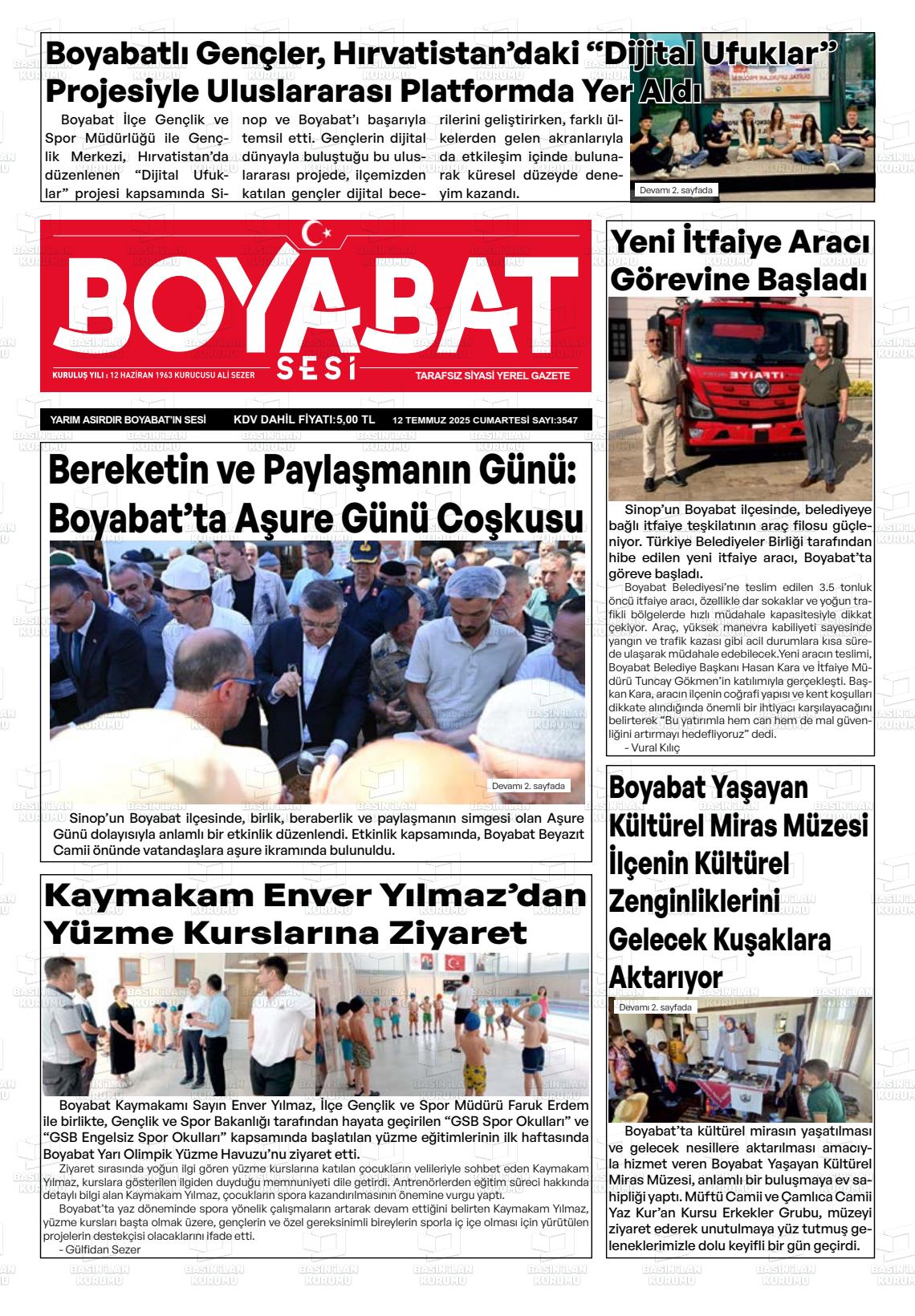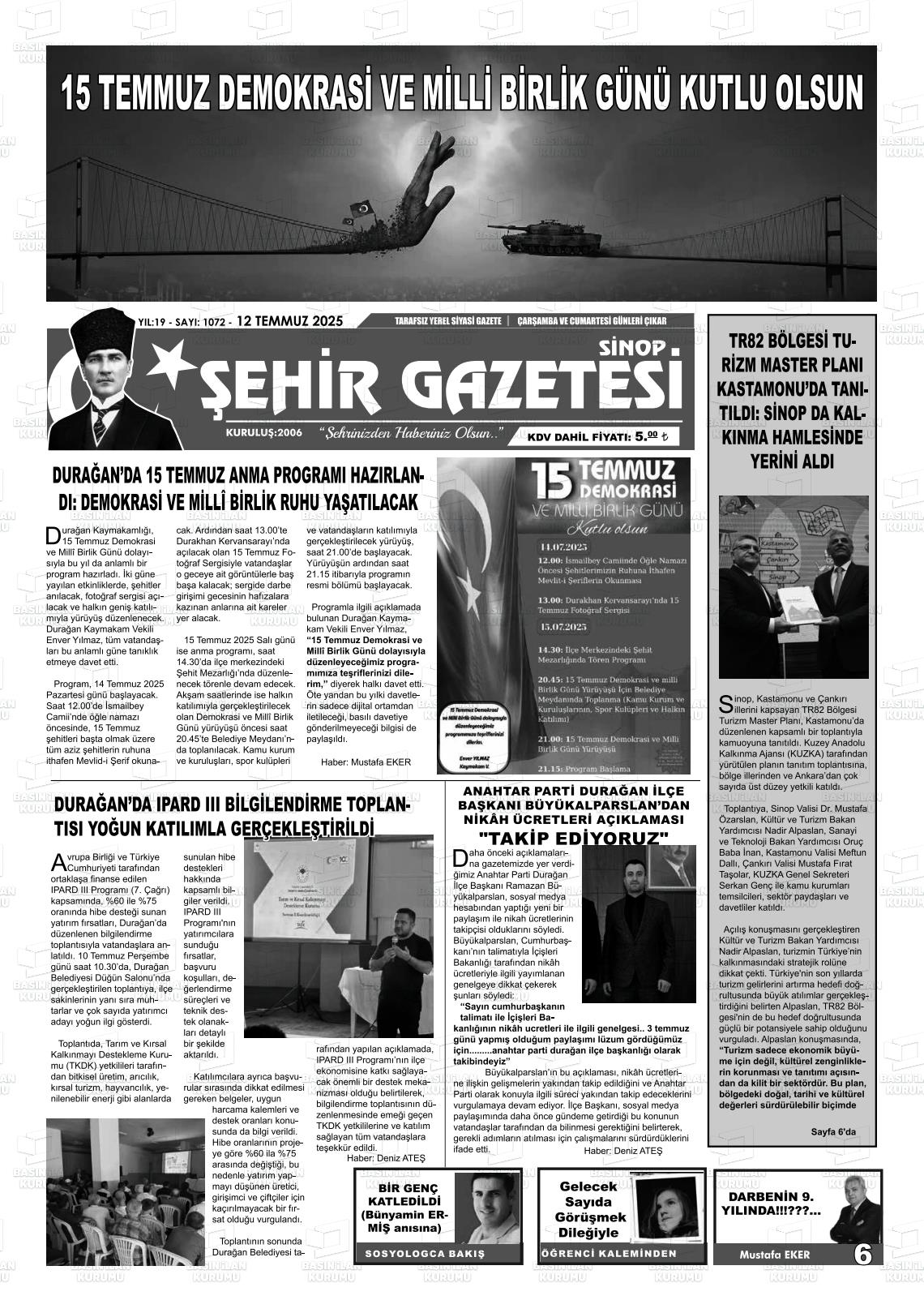 Sİnop Yerel Gazeteleri 08 Ekim 2025, Çarşamba Günü Manşeti