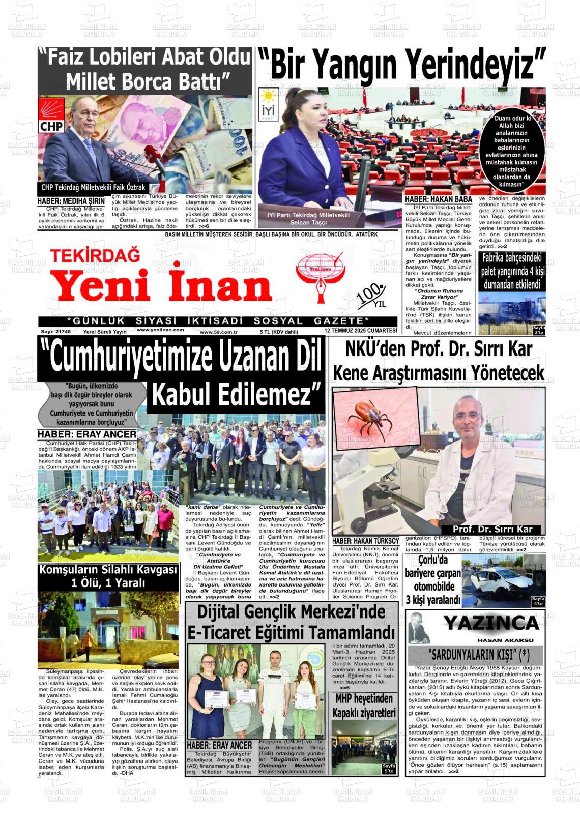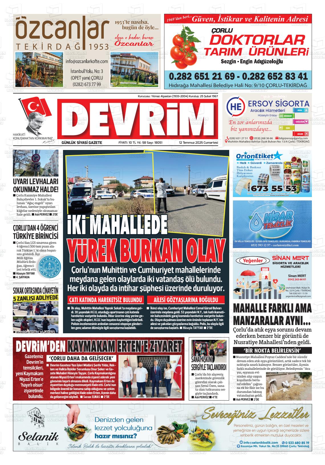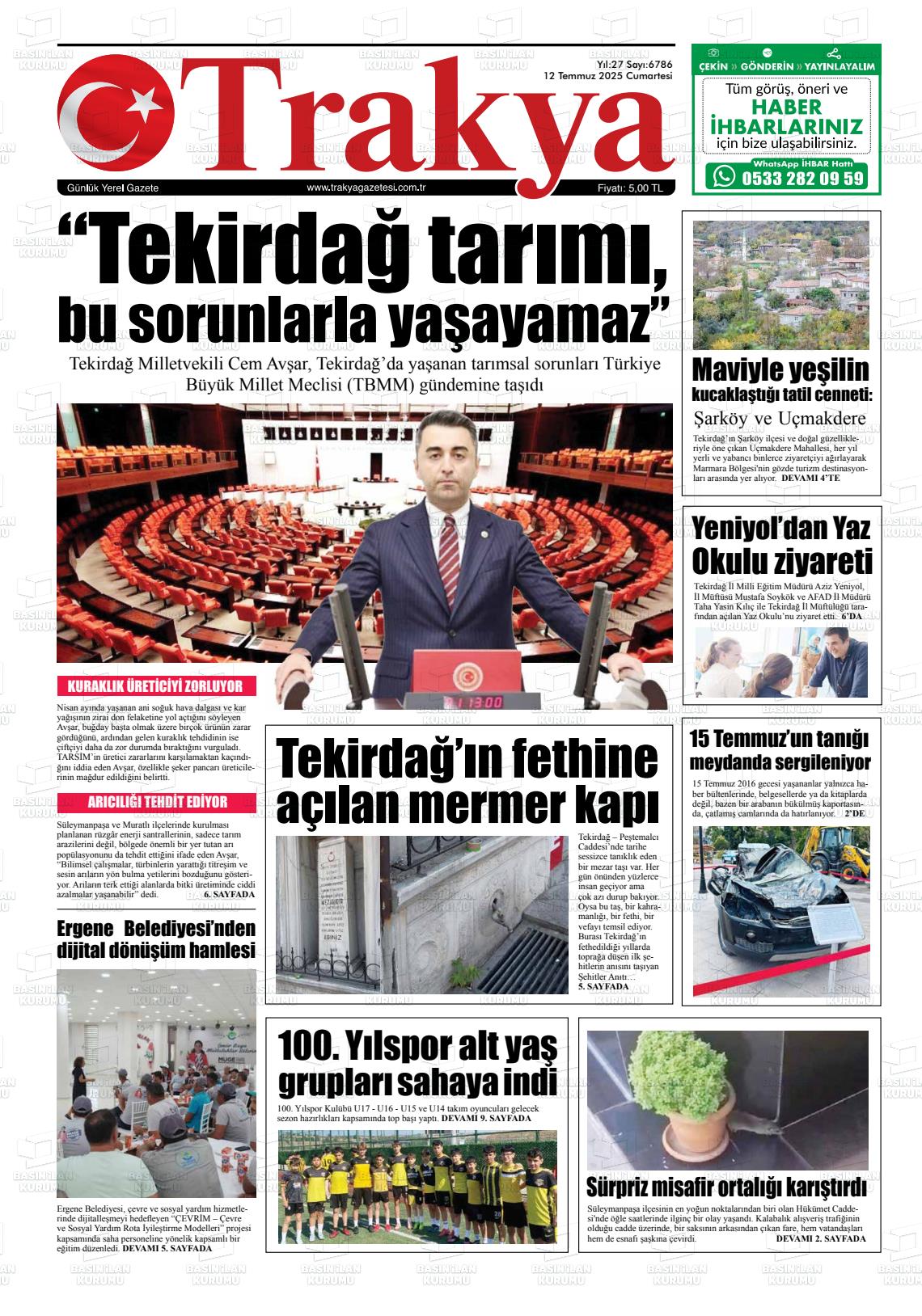 Tekİrdağ Yerel Gazeteleri 29 Ocak 2026, Perşembe Günü Manşeti