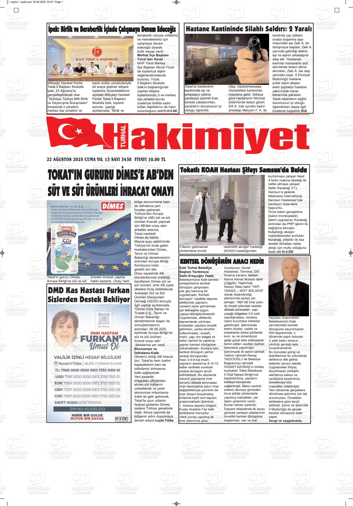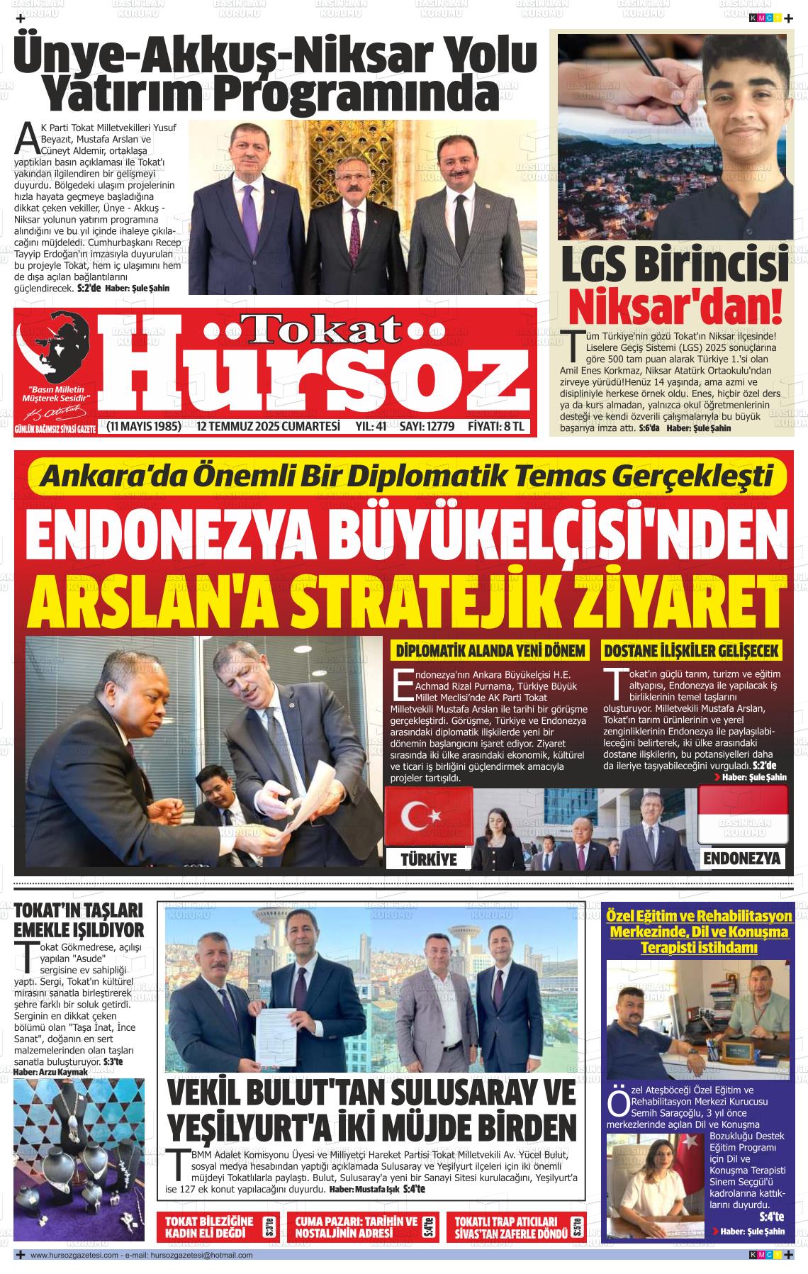 Tokat Yerel Gazeteleri 29 Ocak 2026, Perşembe Günü Manşeti