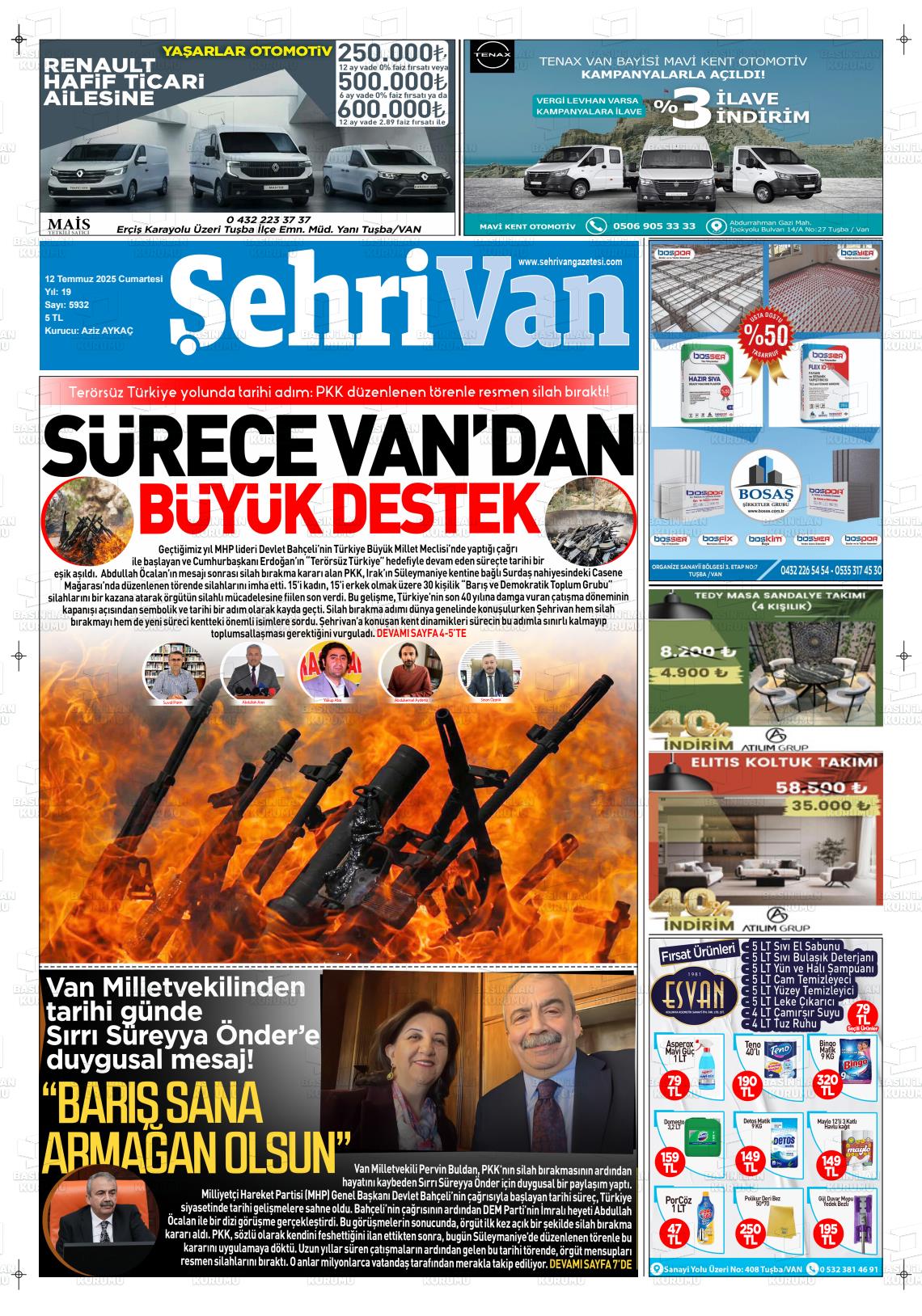 Van Yerel Gazeteleri 29 Ocak 2026, Perşembe Günü Manşeti