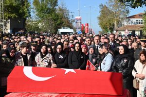 Şehidin eşi Duygu Aykut ile oğlu Poyraz, İlker Aykut’un parkasını giyerek tabuta sarıldı. Bu duygu dolu anlarda törene katılanlar gözyaşlarını tutamadı. Şehidin annesi Zülbiye Aykut da uzun süre ağlayarak ayakta durmakta güçlük çekti.